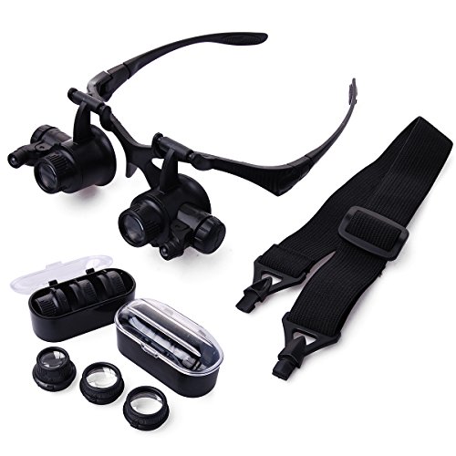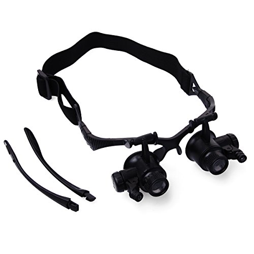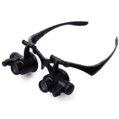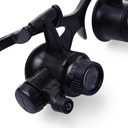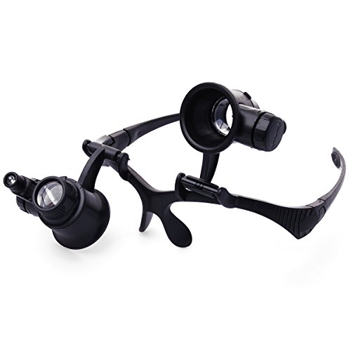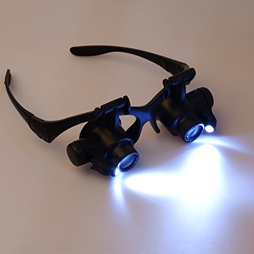 - 左&右ダブルアイパッチ拡大鏡/ルーペ 調整可能なLED付き。