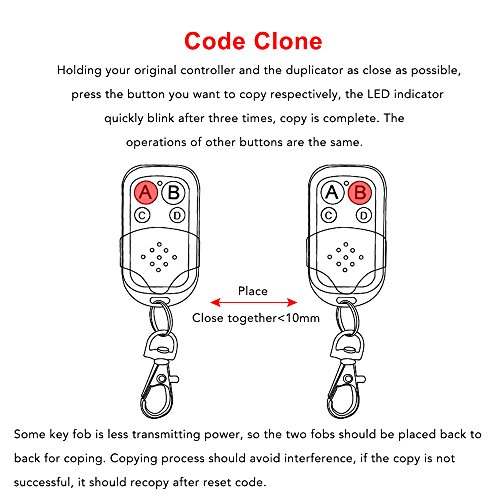 - リモコンが使用されており、2つの周波数433 MHz ( 433.92mhz )では、リモートDUPLICATOR (注: HCSチップやローリングコードリモコンは動作しません)を参照してください。