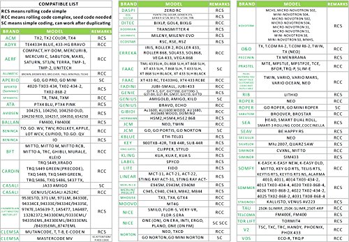 - クローニングマルチ周波数:固定とローリングコード280 mhz-350mhz / 380 mhz-450mhz / 867 mhz-868mhzません。