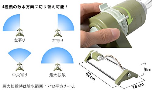 - 4種類の散水方向: 4種類の散水方向に切り替え可能!右寄り・左寄り・中央寄り・最大拡散にダイヤル調整で操作できます。