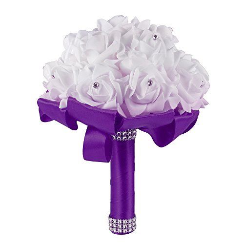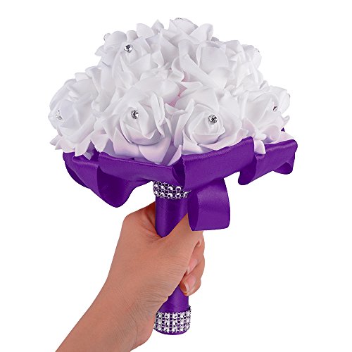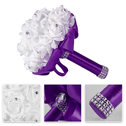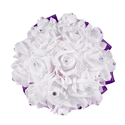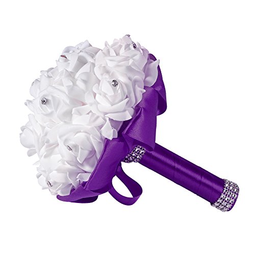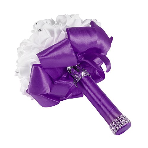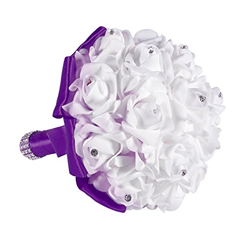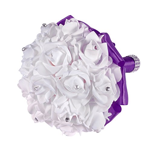 XCSOURCE クリスタルローズ ウェディングブーケ 花嫁/女?相 シルク 人工花 結婚式 パーティーデコレーション ディープ・パープル WV350
