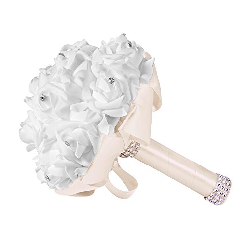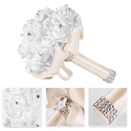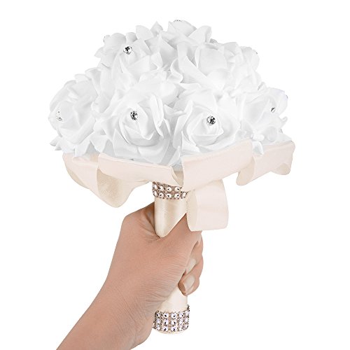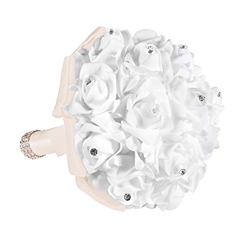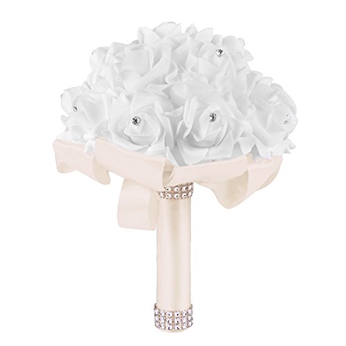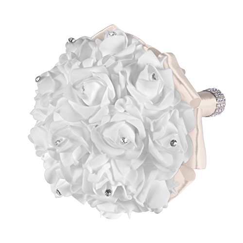 XCSOURCE クリスタルローズ ウェディングブーケ 花嫁 シルク 人工花 結婚式 パーティーデコレーション ベージュ WV344