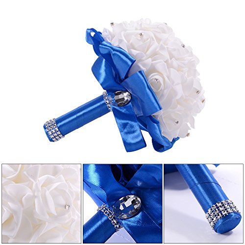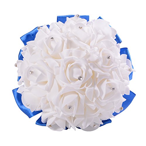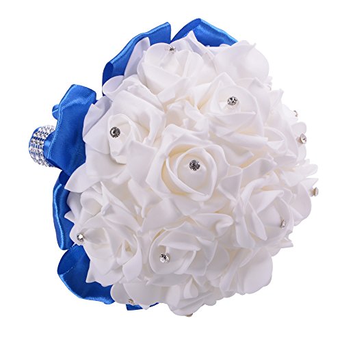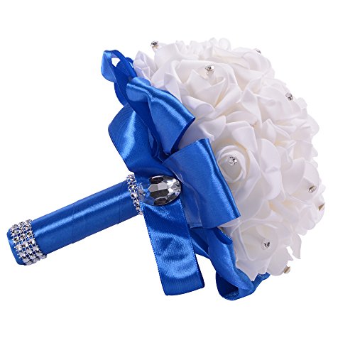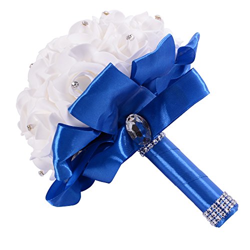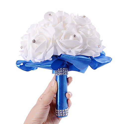XCSOURCE クリスタルローズ ウェディングブーケ 花嫁/女?相 シルク 人工花 結婚式 パーティーデコレーション ブルー WV339