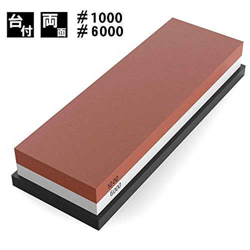 - 【1台で2役】粒度1000と6000両面砥石を組み合せ、一台の砥石で中砥ぎから仕上げ研ぎまで対応可能です。粒度1000の面では刃の潰れを修正したり、サビを落としたり、切れ味を上げたりします。粒度6000の面では刃を調整すると表面をならしたり、光らせたりします。