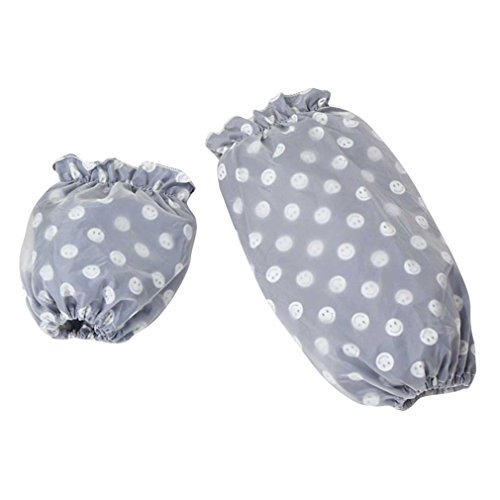XIKA 袖カバー レディース アームカバー 汚れ防止 笑顔の柄 ロング丈+ショート丈【2ペアセット】 (ブルー(ロング+ショート))
