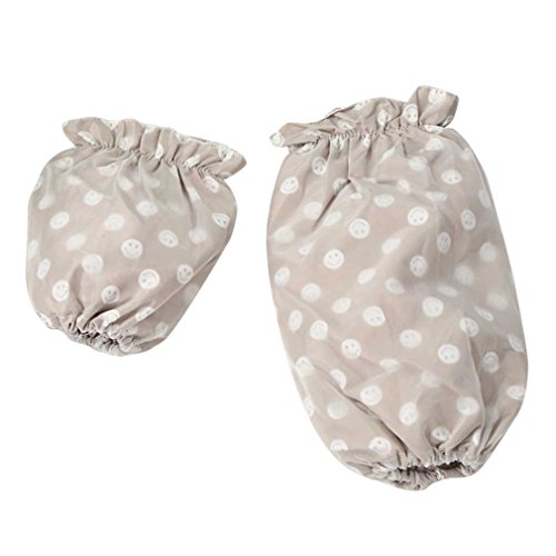 XIKA 袖カバー レディース アームカバー 汚れ防止 笑顔の柄 ロング丈+ショート丈【2ペアセット】 (ブラウン(ロング+ショート))