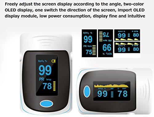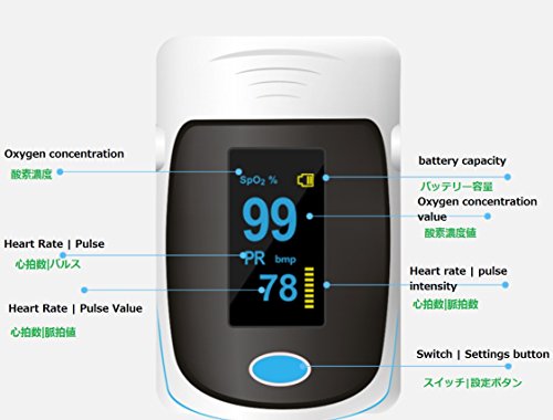 - 正確で高速な測定:SpO2(血中酸素飽和度)と脈拍数を数秒で正確に測定します。 SpO2値を最大100%表示して表示できる唯一のOLEDパルスオキシメータです。
