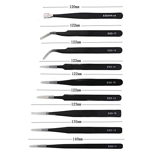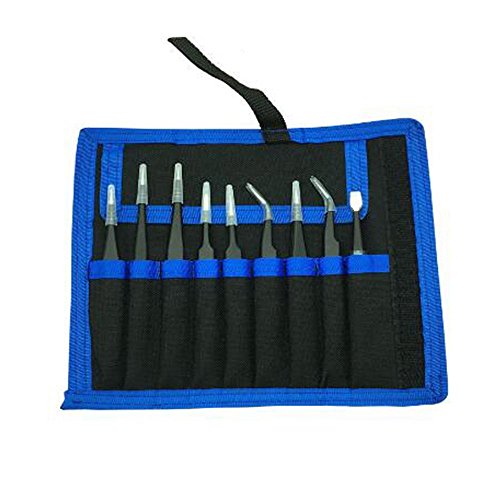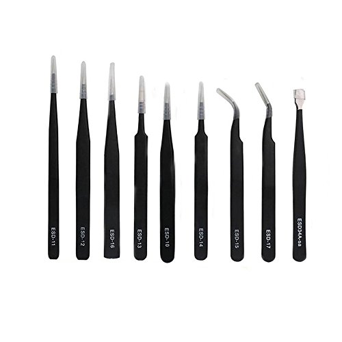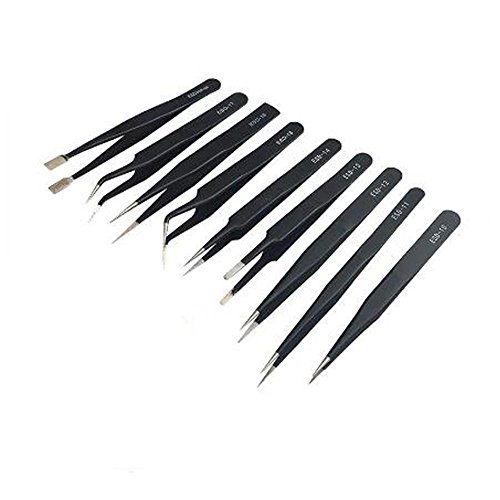 Xiton ピンセット 精密 ESD 9本セット 収納袋付 ブラック 電子仕事 精密