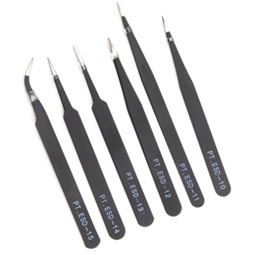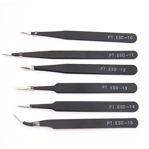 Xiton ピンセット 精密ESD ツール ステンレス製 防磁 静電防止 ツイーザー 電解防錆黒色皮膜 電子工作 メンテナンス用 6本セット