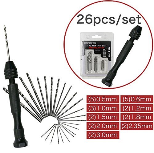 - 【仕様】素材:超硬合金、高速度鋼 ピンバイス長さ:約120mm 適用範囲:0.3-3.6mm 26本セット内容:1×ピンバイス、5×0.5mmドリル、5×0.6mmドリル、3×1.0mmドリル、2×1.2mmドリル、2×1.5mmドリル、2×1.8mmドリル、2×2.0mmドリル、2×2.35mmドリル、2×3.0mmドリル 10本セット