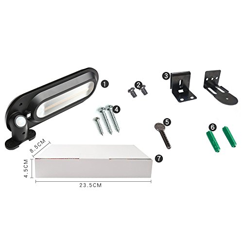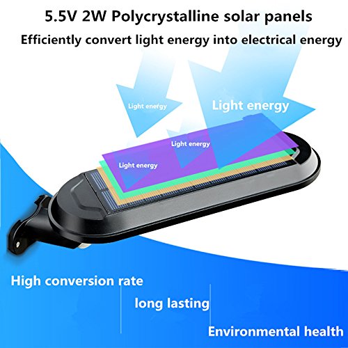 発光色:白(6500k)、暖白色(3000k) ランプヘッドの回転角度:180° 仕事モード:1誰も少し明るく、誰かが長い光を通りません。 2誰も光を通さず、誰かが長い光を通ります。 3 4時間の明るい光の後に閉じます。 4明るい光の8時間後に閉じます 照明時間:8-10時間 内蔵バッテリー:1x18650リチウムバッテリー バッテリー容量:2200mah 製品の材質:ASB + PC 光源:18個のSMD2835ランプビーズ センシング距離:8-10メートル 光束:600ルーメン 寸法:180x240mm 生涯:20000(時) ソーラーパネル:5.5V 1.5W 製品重量:230g 誘導角:150° 日照時間:8時間 保護レベル:IP65