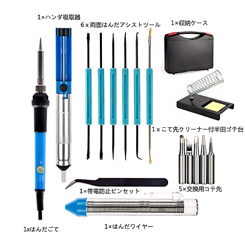 YEDUEO はんだごて 7-in-1はんだごてセット 電気ハンダゴテ ダイヤル式電子はんだこて 温度調節可能(200-450℃) 60W 110V 収納ケース付き