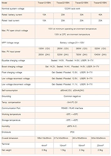 1×TRACER1215BN 10Aソーラー充電コントローラ