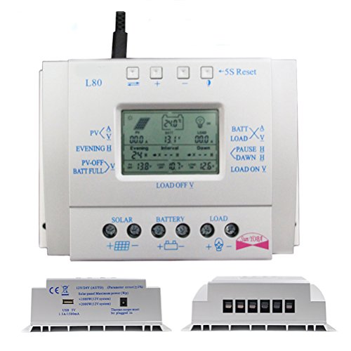 Y-SOLAR 60A 80A 太陽電池充電コントローラ LCD12V24Vオート USB付き 照明の負荷タイマーおよびライトコントロール付き (80A)