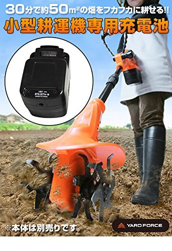 - 家庭用にぴったりのサイズ 女性も使いやすい小型の耕運機(電動)専用のバッテリー 家庭菜園にもおすすめの耕耘機
