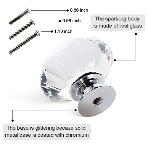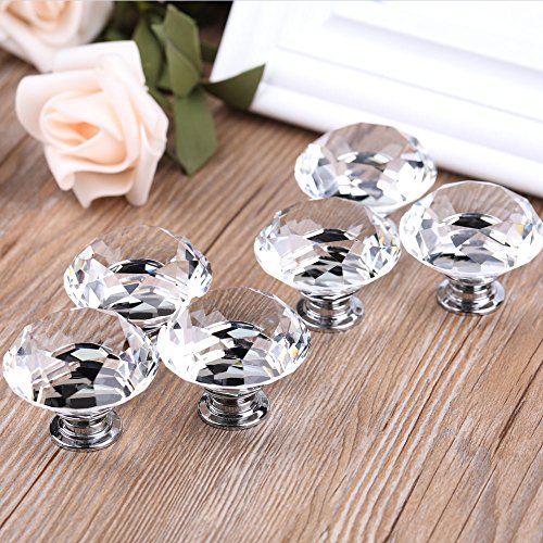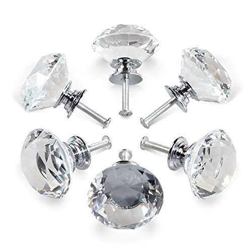 YDO ダイヤモンド状 ガラス クリスタル キッチン クローゼット ハンドル 取っ手 40mm 6個
