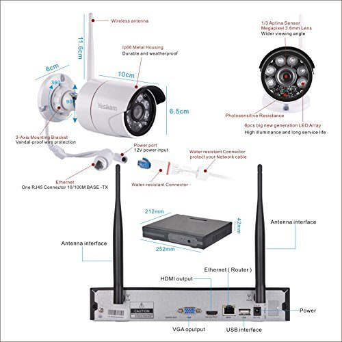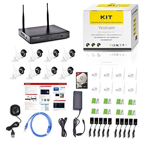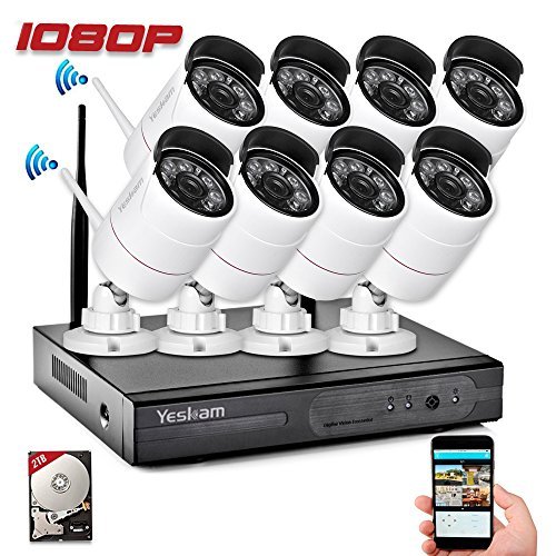 Yeskam 1080P Wireless Security Camera Systems is your reliable security guard which can be used at residence or business,True Plug and Play With Auto-Pair technology, just power on the device; connect to a monitor; enjoy live video in minutes.Motion detection option allows you record only when motion is detected so that you can save hard drive storage space without missing important events.Email & Mobile App notification when while home or away. Pre- installed 2 TB hard-drive records continuously for 240 hours on all 8 channels in 1080p, or much longer (20- 50+ days) using motion detection or scheduled recording. convenient installation and easy remote control, this is what the Yeskam advanced security system provides to release your mind.