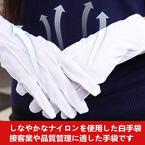 - しっかりとした縫製に肌触りの良い生地なので、商品の取り扱いや接客など最適な白手袋です。しなやかで、ホコリが出にくいナイロン素材を使用しているので、精密作業にもお使いいただけます