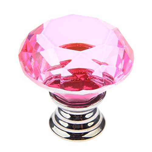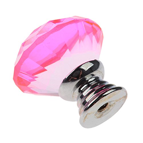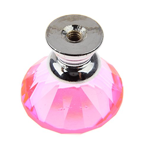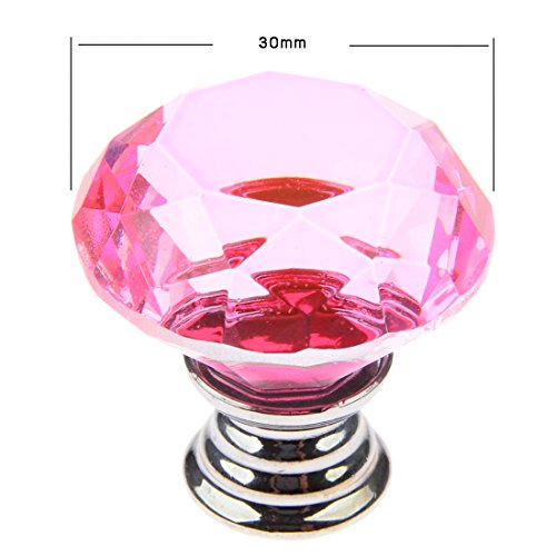 YIFAN つまみ 引き出し取っ手 ハンドル タンス キッチンキャビネット 食器棚 引き出し 取っ手 ドアノブ ネジ付き クリスタル ダイヤモンド型 30mm 10個セット (ピンク)