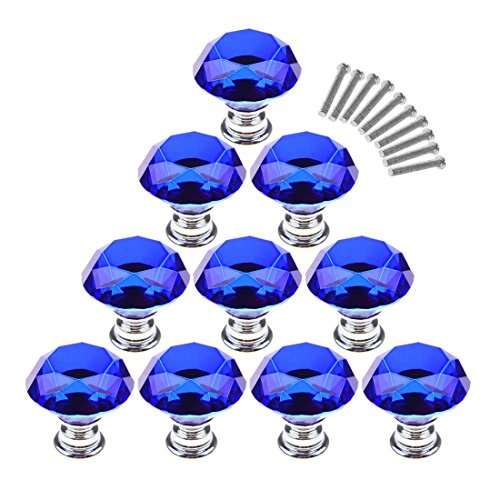 Cabinet Knobs,YIFAN 10Pcs 30mm Crystal Glass Diamond Shape Cabinet Knobs Cupboard Drawer Pull Handles - Dark Blue [並行輸入品]