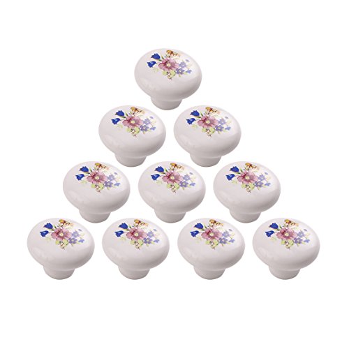 キャビネットノブ, YIFAN 10個入りフラワーパターンヨーロピアンスタイルのセラミック優雅ハンドルドアノブキャビネット引き出しワードローブドア – Orchidパターン