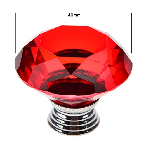 YIFAN 引き出しハンドル 取っ手 家具 ドア シンプル 部屋 家庭用 子供用 きれい クリスタル ダイヤモンド ガラス 戸棚 ドレッサー ネジ付き 安全 精巧 水晶 高級感 きらきら 紅色