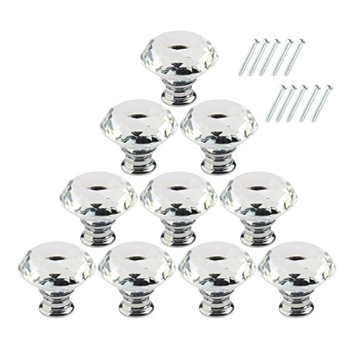 10個入りの40mm取っ手,YIFAN ハンドル キャビネットノブ クリスタルガラスダイヤモンド形状 食器棚の引き出し プル- タイプ2透明