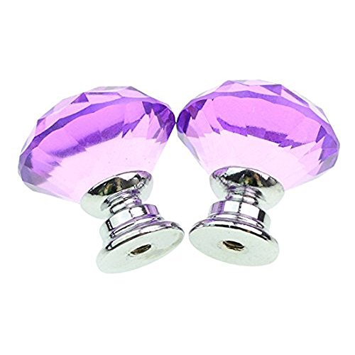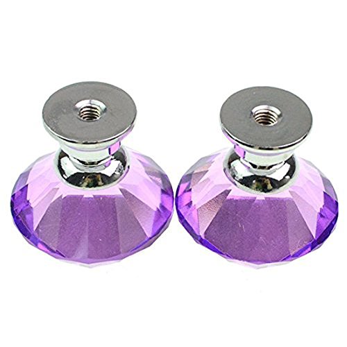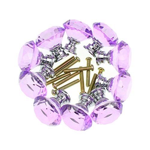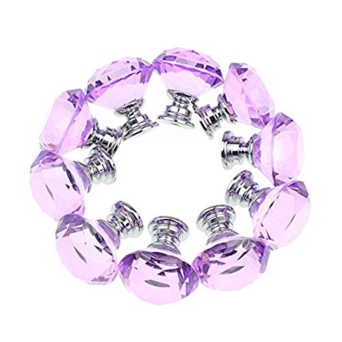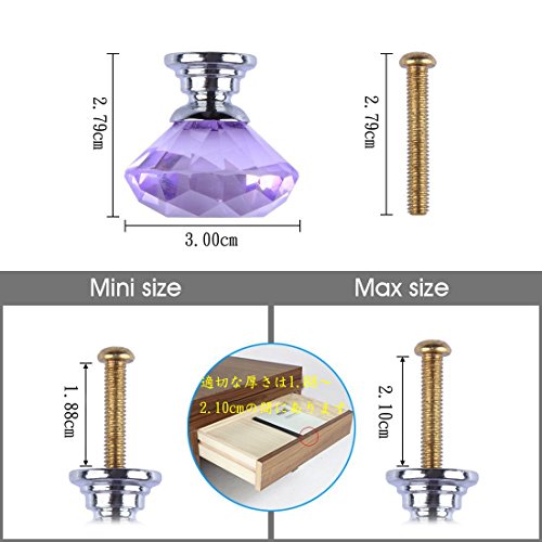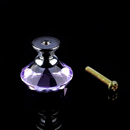 10個入りの30mm取っ手,YIFAN ハンドル シルバーネジ付き キャビネットノブ クリスタルガラスダイヤモンド形状 食器棚のプル たんす引き出しの取っ手 - ラベンダー