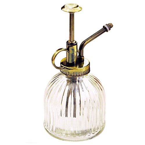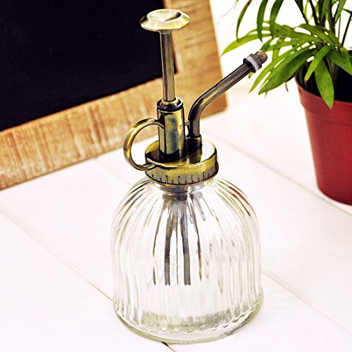 YIFAN スプレーボトル ミニ霧吹き 水撒き 家庭用 園芸用 ガラス製 おしゃれ 霧吹きボトル 多肉植物 観葉植物 掃除 レトロ-透明色 9 * 9 * 16cm