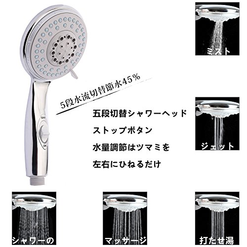- <多機能シャワー>[ミスト・レイン・ミスト+レイン・ジェット・ジェット+レイン]など五つ切り替えモードが可能な最新モデルシャワーヘッドです。力強いジェット水流で、毛穴に詰まった汗や皮脂などの汚れをキレイに洗い流します。ニオイやフケ、かゆみ等の緩和・対策にも