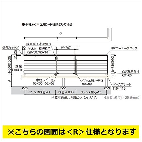 本体が複合カラーの場合、(吊元用・受用)端柱を使用しないデッキ門扉用柱はプラチナステン色を手配してください。デッキ門扉用柱が複合カラーでも柱本