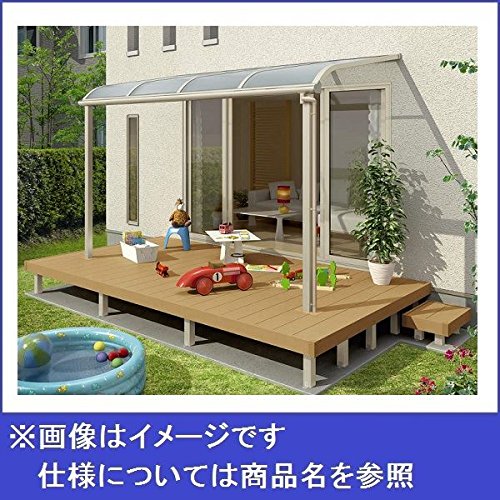 YKK ap ガーデンリビングセット リウッドデッキ200 + ヴェクター テラス屋根 2間×4尺 デッキ高さ:Tタイプ(440~550mm) テラス屋根:柱奥行移動タイプ R屋根 ポリカーボネート ホワイトブラウン(FD)