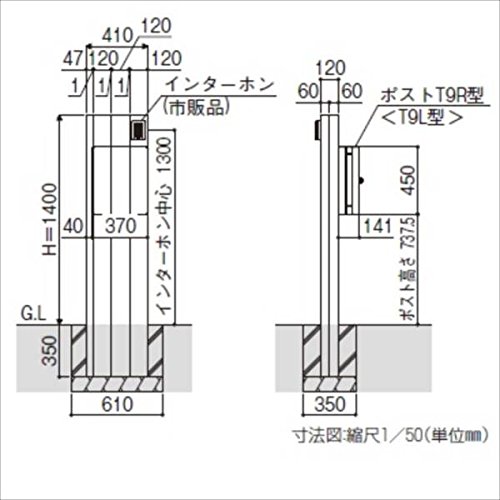 ●ポスト:T9R型(カームブラック)※L型にも出来ます