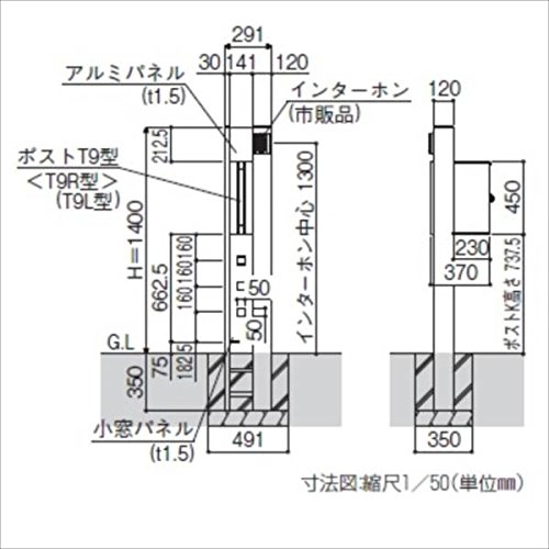 ●ポスト:T9型(アルミカラー)