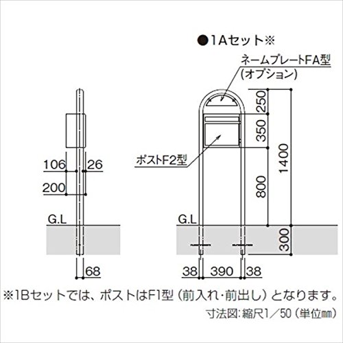 YKK ap ポスティモ(ネームプレート無し・前入れ前出し・ FMB-1) 1Bセット 『郵便ポスト』 レッド