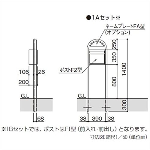 YKK ap ポスティモ(ネームプレート無し・前入れ前出し・ FMB-1) 1Bセット 『郵便ポスト』 イエローグリーン