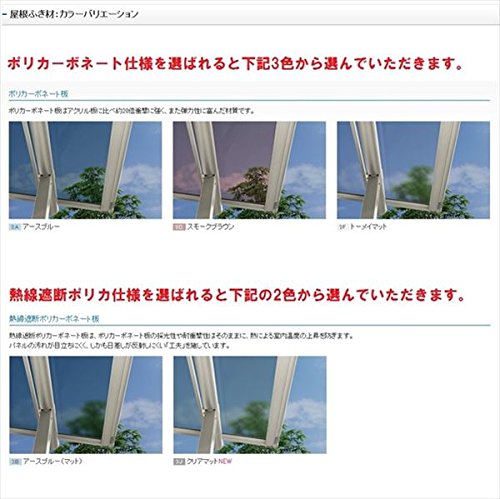 ●単体で最大3間×15尺まで対応可能豊富なサイズバリエーション紫外線をほとんど通さない、ポリカーボネート板の屋根ふき材バリエーション使用目的やお好みに合わせて選べます。ヴェクターは地域環境に応じた最適な屋根を選んでいただくために、雪と風に配慮した強度性能です