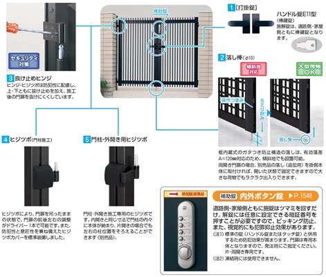 ●備考:● セット価格は、[門扉本体]+[折戸本体]+[ハンドル錠E11型]+[戸当り]+[折戸部品]+[門柱100角10・12]で計算しています。