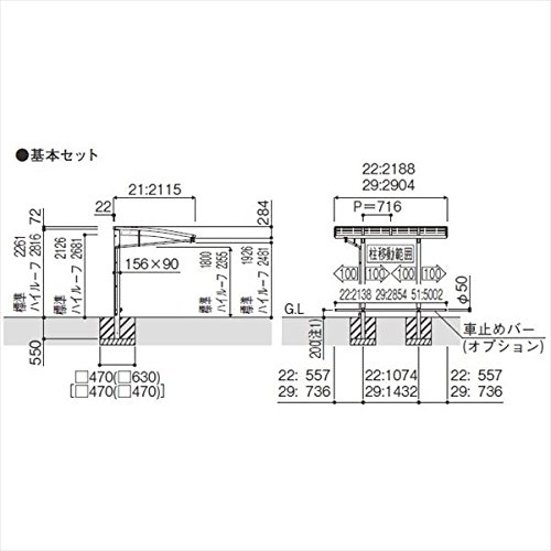 サイクルポート YKK ap レイナポートREグラン ミニ 29-21 基本セット 熱線遮断ポリカ屋根 標準高さ 『サビに強いアルミ製 家庭用 おしゃれ 自転車置き場 屋根』 プラチナステン