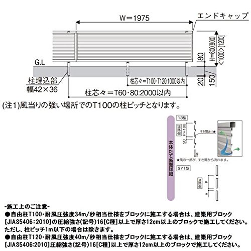 ●13型のみ風当たりの強い場所では(耐風圧強度40m/秒相当仕様の自由柱/間仕切柱)をご使用ください。