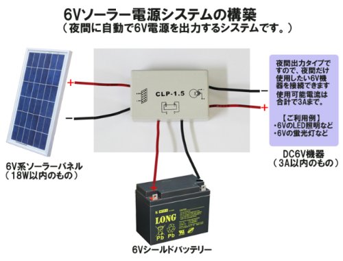 - 対応チャージコントローラー:1枚時:6Vシステム用3Aチャージコントローラー