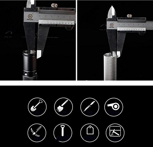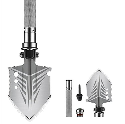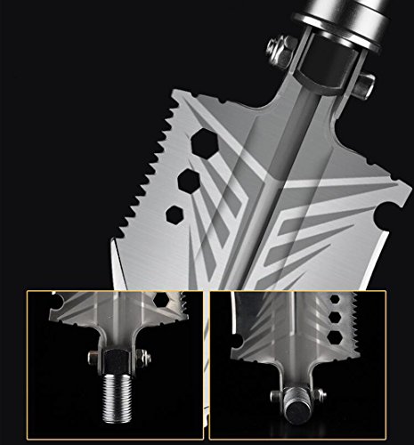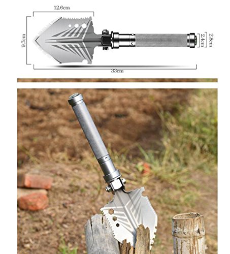 - パワフルなコンビネーション:アウトドアサバイバルに不可欠なツールです。シャベル、斧、鋸、ハンマーなどの基本機能を使用できます。また、接続チューブを外して、隠されたライフナイフ、緊急ホイッスル、ボトルオープナー、ライターを表示することもできます。