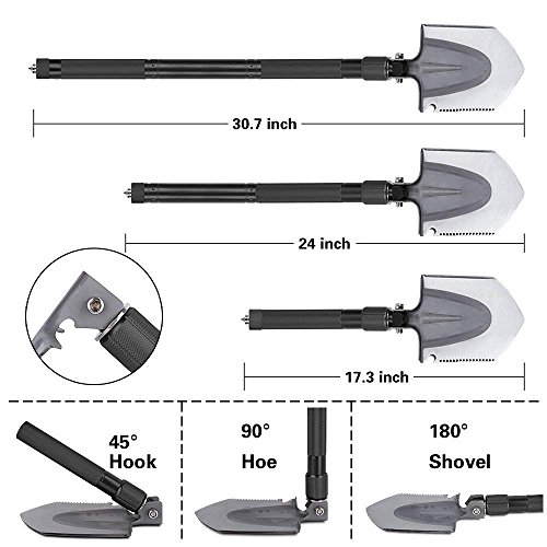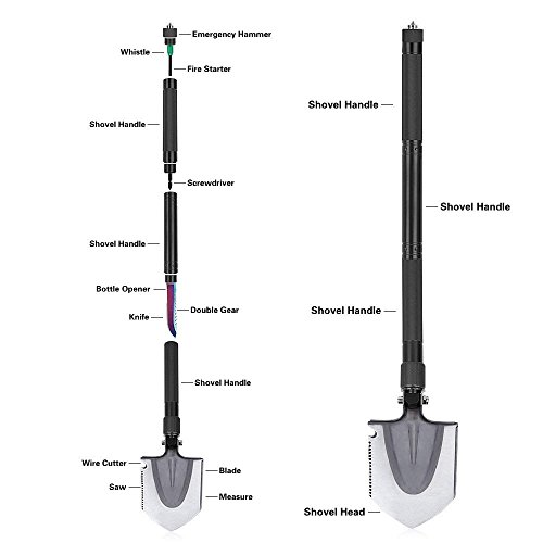 - 持ち運びに便利 - この折りたたみ式のショベルのすべてのツールは、非常にコンパクトでポータブルなストラップ付きの持ち運び可能なバッグが付属しています。この高品質の持ち運び用バッグに入れて運ぶことができ、この戦術的なシャベルは最高の緊急アウトドアキャンプ、ハイキング、