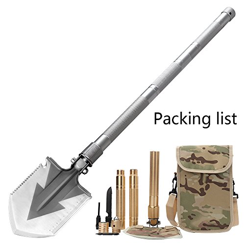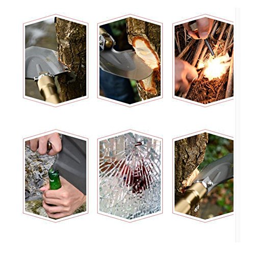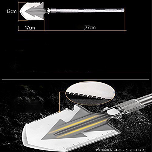 - ワンピースサバイバルツール - 頑丈なシャベル、シャープなブレード、鋸歯状のエッジ、ハンマー、ブレード、カッター/ルーラー、ナイフ、鋸、フックナイフ、ボトルオープナー/鍬、ハンティングナイフ、安全ハンマー、屋外用
