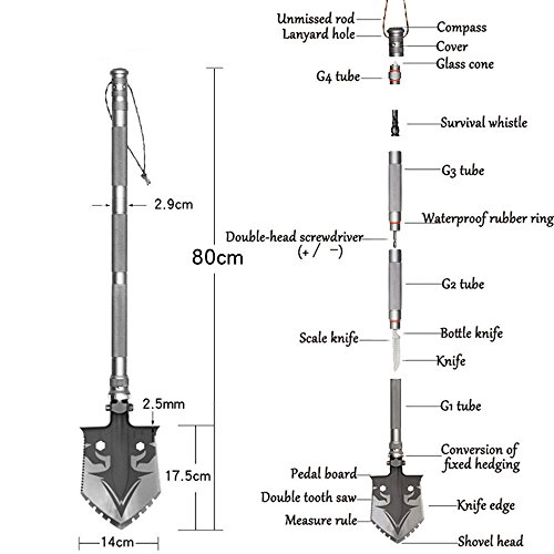 - 重要なツール - 雪、ハイキング、自衛、釣り、狩猟、ガーデニングアウトドアアクティビティ、自動車ドライバーのための理想的なツールです。雪や泥や氷から車のタイヤを掘ることができます。また、シャベルヘッドをガラスブレーカー