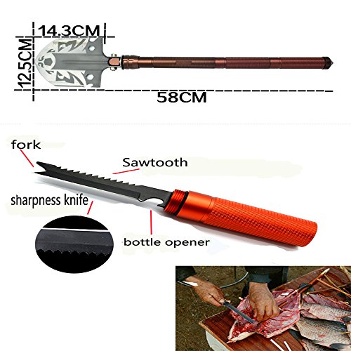 屋外多機能折りたたみショベルポータブルフィールドサバイバル自衛隊キャンプミリタリーガーデンシャベル,Red