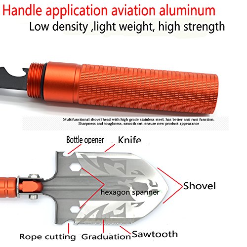 - サバイバル機器:多目的キャンプショベルは、過酷な環境、野生での狩猟、野菜の刈り取り、雪や泥や氷による車のタイヤの掘削、または緊急時にシャベルヘッドをガラスブレーカーとして効果的に適用できます。