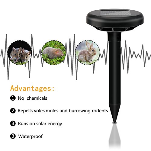 - ムーレスガーデンを手に入れよう:ソーラーモールの忌避剤は、ゴキブリ、ヴォールス、マウス、ハムスター、ハムスター、および害虫に起因する農場、庭園、芝生またはヤードの被害を軽減する環境に優しい方法です。