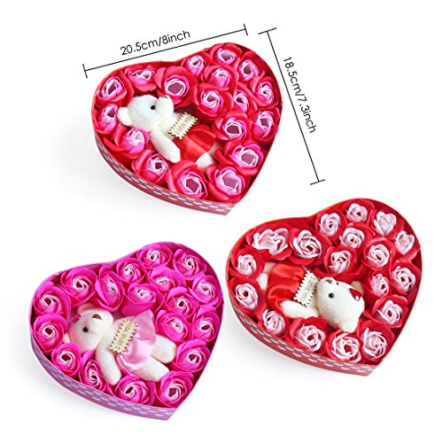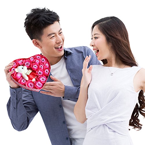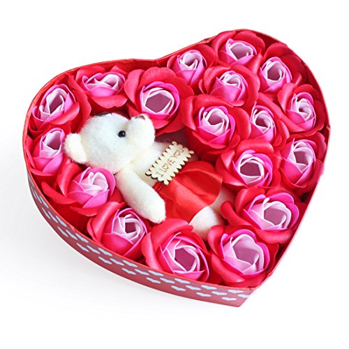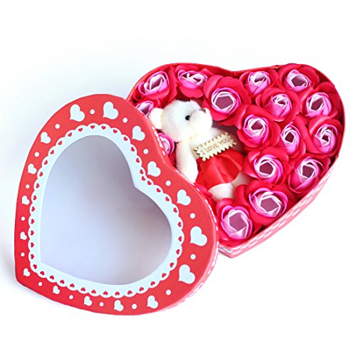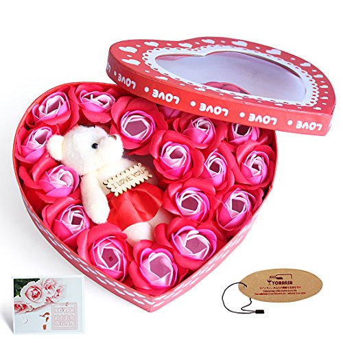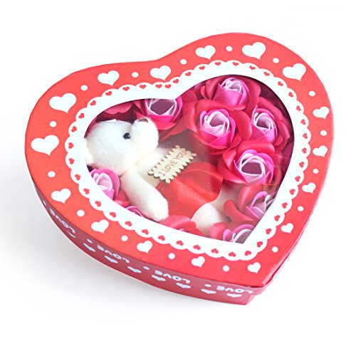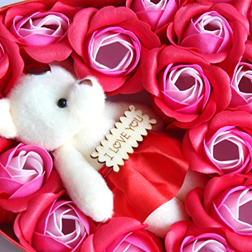 Yobansa 造花 ソープ フラワー プレゼント 枯れない お花 薔薇 かわいいクマ 石鹸 バラハート型ギフトボックス 誕生日 結婚 記念日 卒業 入学 出産 お祝い (赤いバラ)