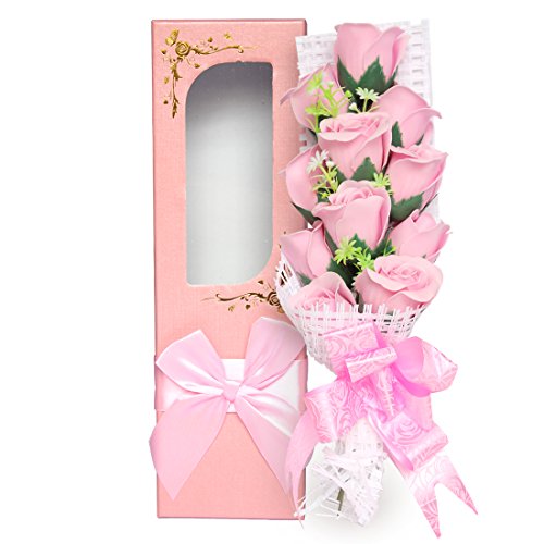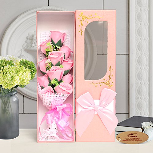 Yobansa 造花 フレグランスソープ フラワー 石鹸の花 花束 ギフト( 母の日 ・ バレンタイン ・ ホワイトデー ・ 入学 ・ 卒業 ・ 誕生日 ・ 結婚記念日 など 様々な お祝い の シーン に 最適 , 11 本 (新しいピンク)